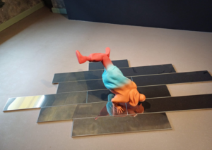 İnsanın insana yansımasının, ayna vazifesi olması halinin, yere döşenen ayna şeritleri üzerinde ‘Break Dance’ yapan genç heykeli ile bizlere sunulması bana çok çarpıcı geldi.