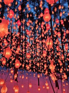 Deneyimlediğimiz bu bütünlük, aslında ışıktan öte, üç boyutlu bir videonun yaşayan kalbiydi. Her ışık noktası, sürekli akan ve form değiştiren bu görüntünün canlı bir hücresi gibi hareket ediyordu. Renklerin ağaçlar arasındaki geçişi ve havada süzülen ışık dalgaları, huzur verici bir melodiyle kusursuz bir senkronizasyon içindeydi. Müzik, ışık noktalarının rengine dokunurken ritim göz alıcı bir şölene dönüşüyordu. Öyle ki, gözlerinizi kapattığınızda bile o melodilerin içinde renkleri görmeye devam edebiliyordunuz.